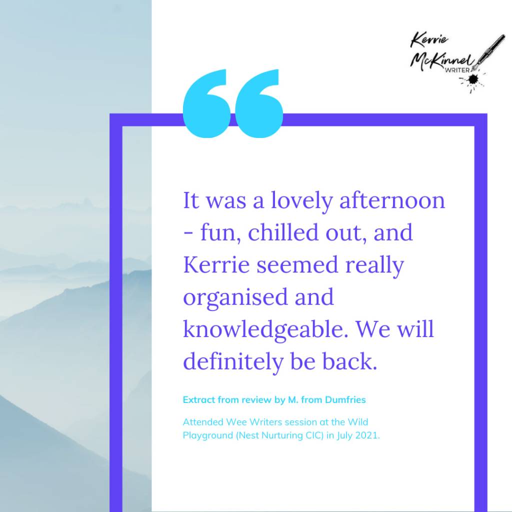 Toddler sessions are also fantastic fun! These have run before at venues including the National Centre for Children’s Literature and Storytelling (Moat Brae – Peter Pan House). No need to be able to read or write – just come along and join in with the activities, games and stories, which can be themed to anything including the season, venue, a particular book.